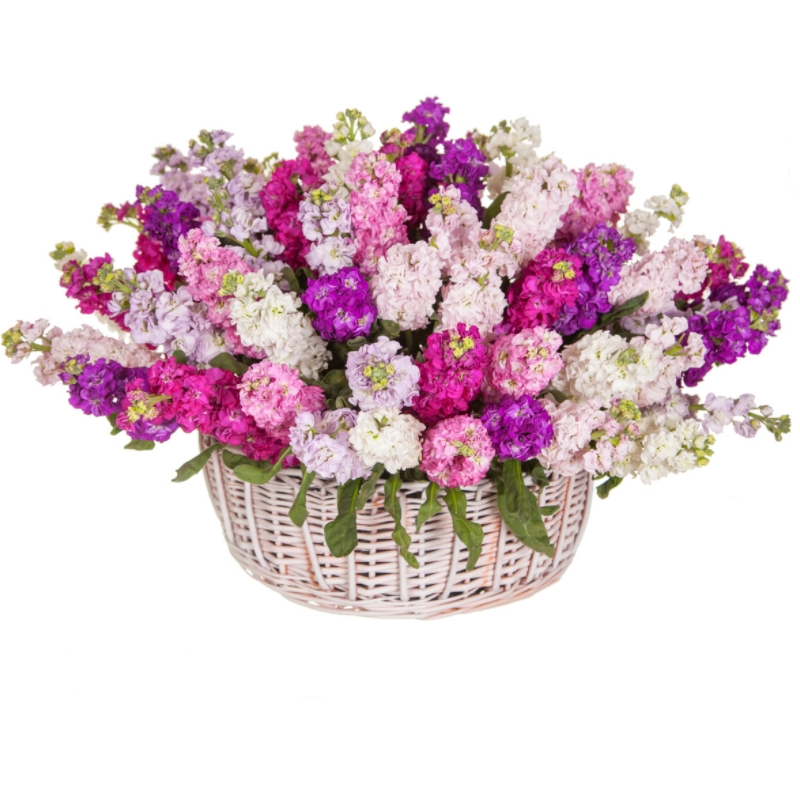 Букет из маттиол в корзине "Брызги шампанского"